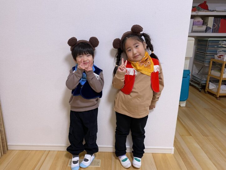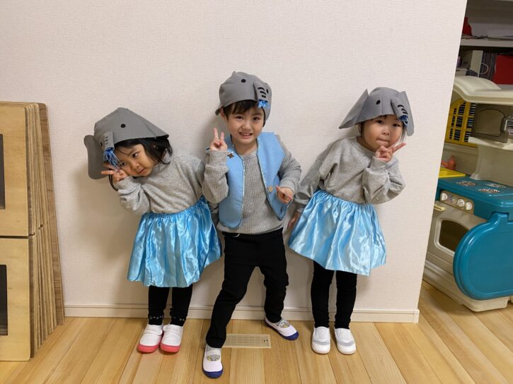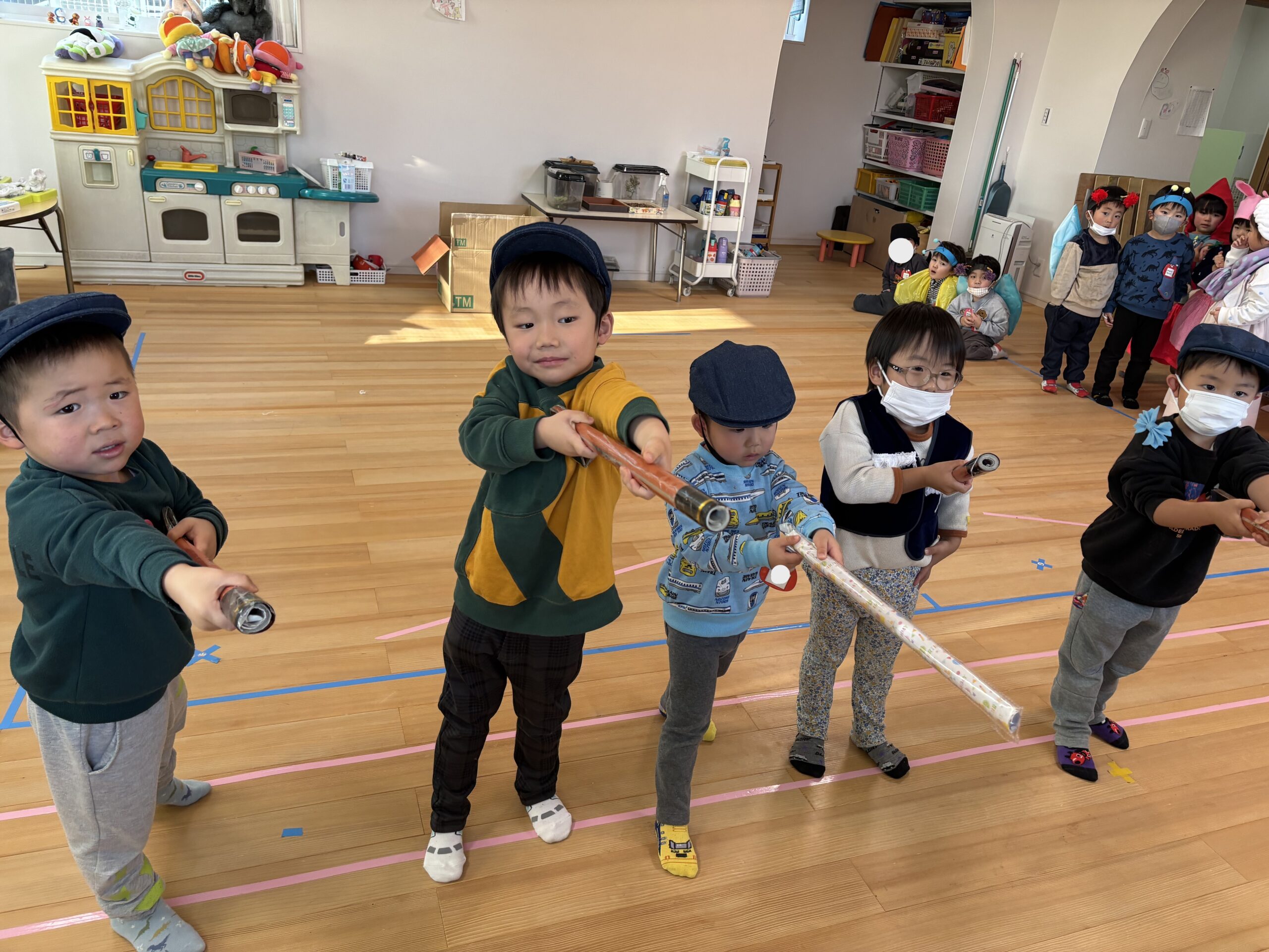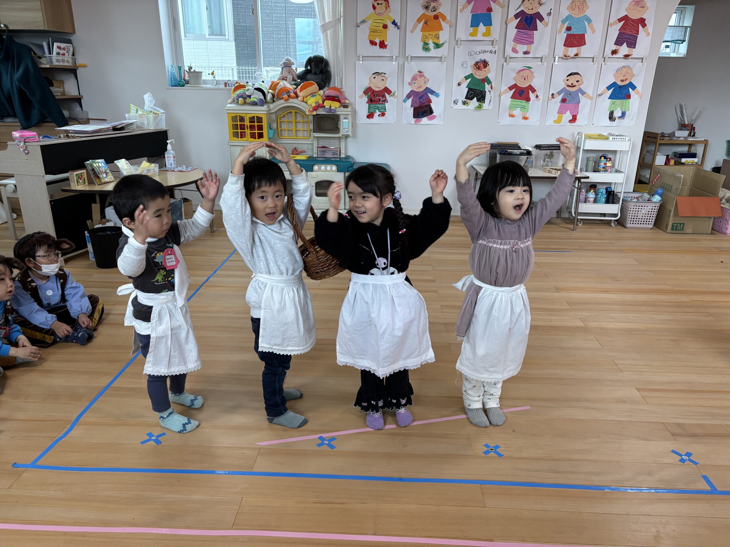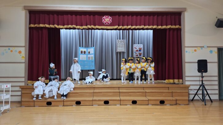 お家の人が見に来て、緊張しながらも役になりきって頑張る年少組でした。