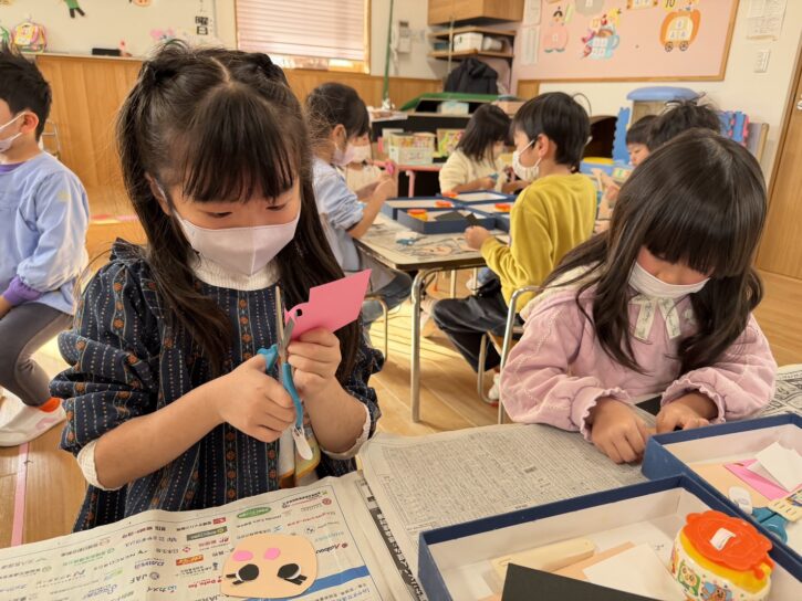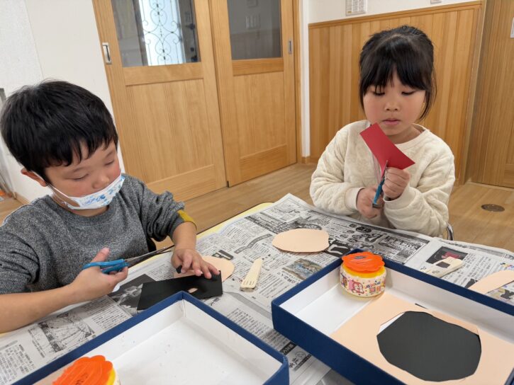 顔の形を切り、髪の毛や顔のパーツを完成させていきました✂