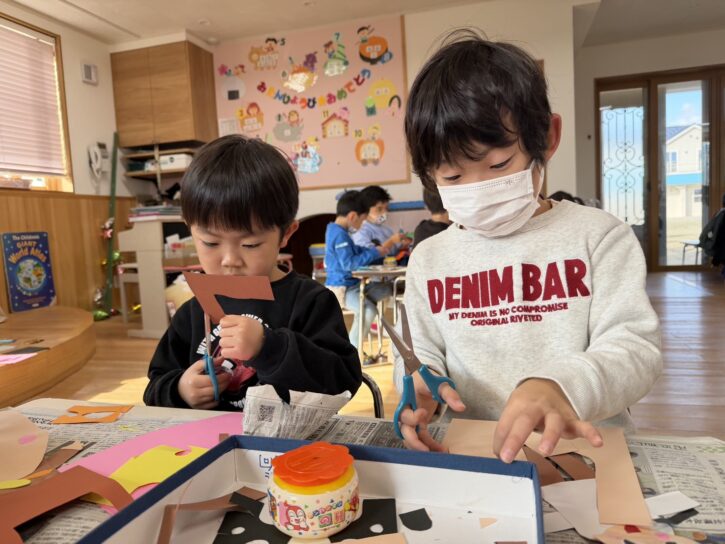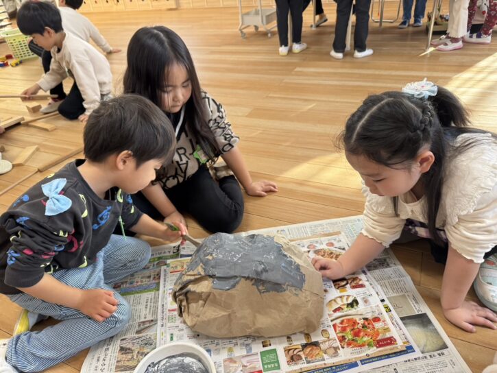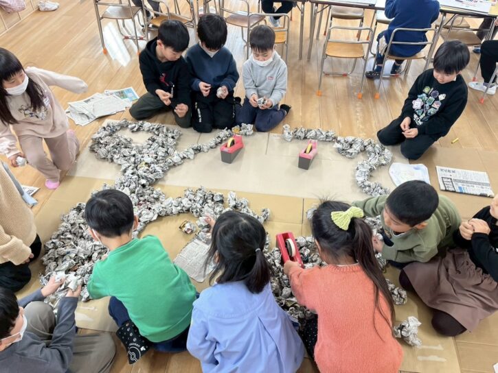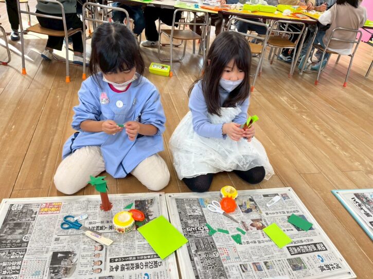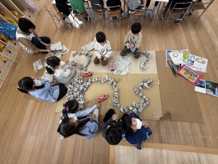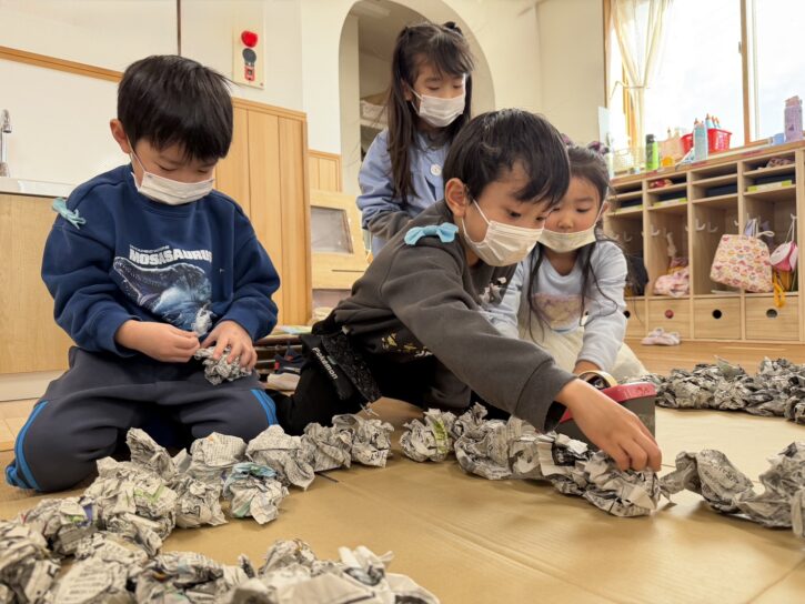 もも組の島の土台には、丸めた新聞が入っています📰
