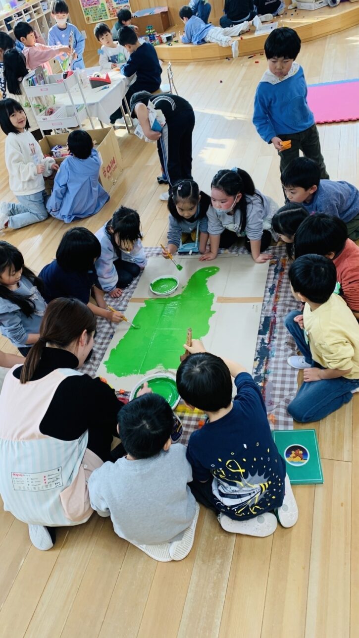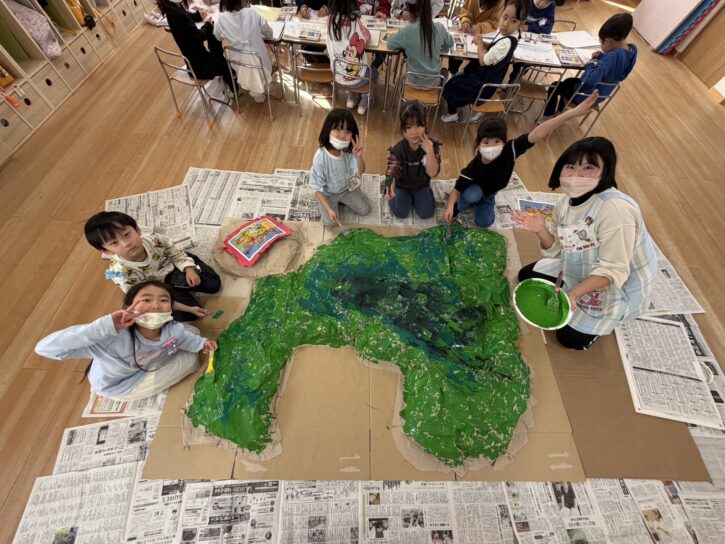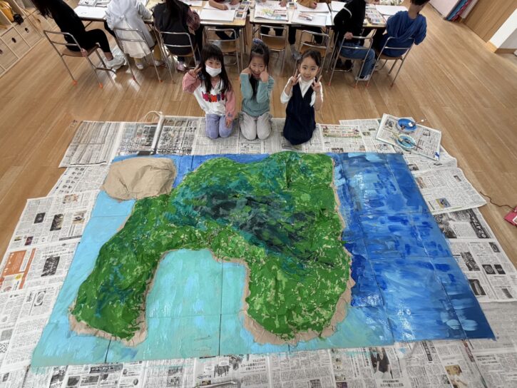 「自分」が完成した後は、ジオラマの土台をクラスのみんなで作りました。