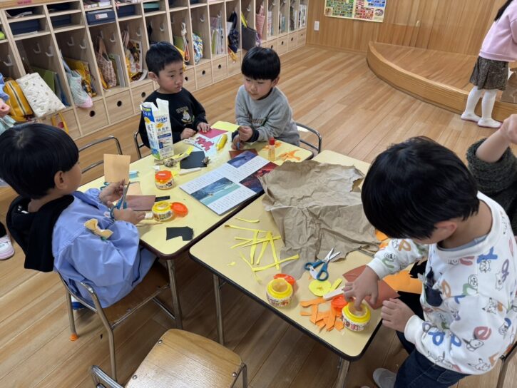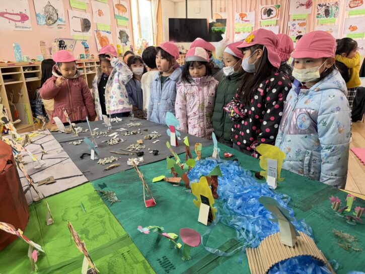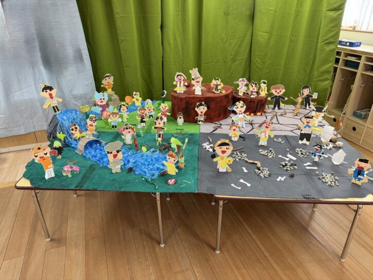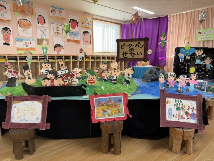 みてみてショーを終えてから、さくら組は『ライオンキング』、もも組は『ピーターパン』の世界をジオラマにして作りました☺