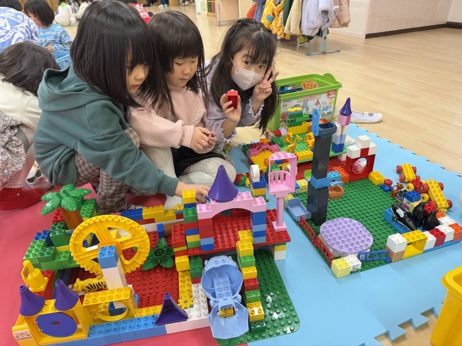 友達とブロックで素敵なお家を作ったり