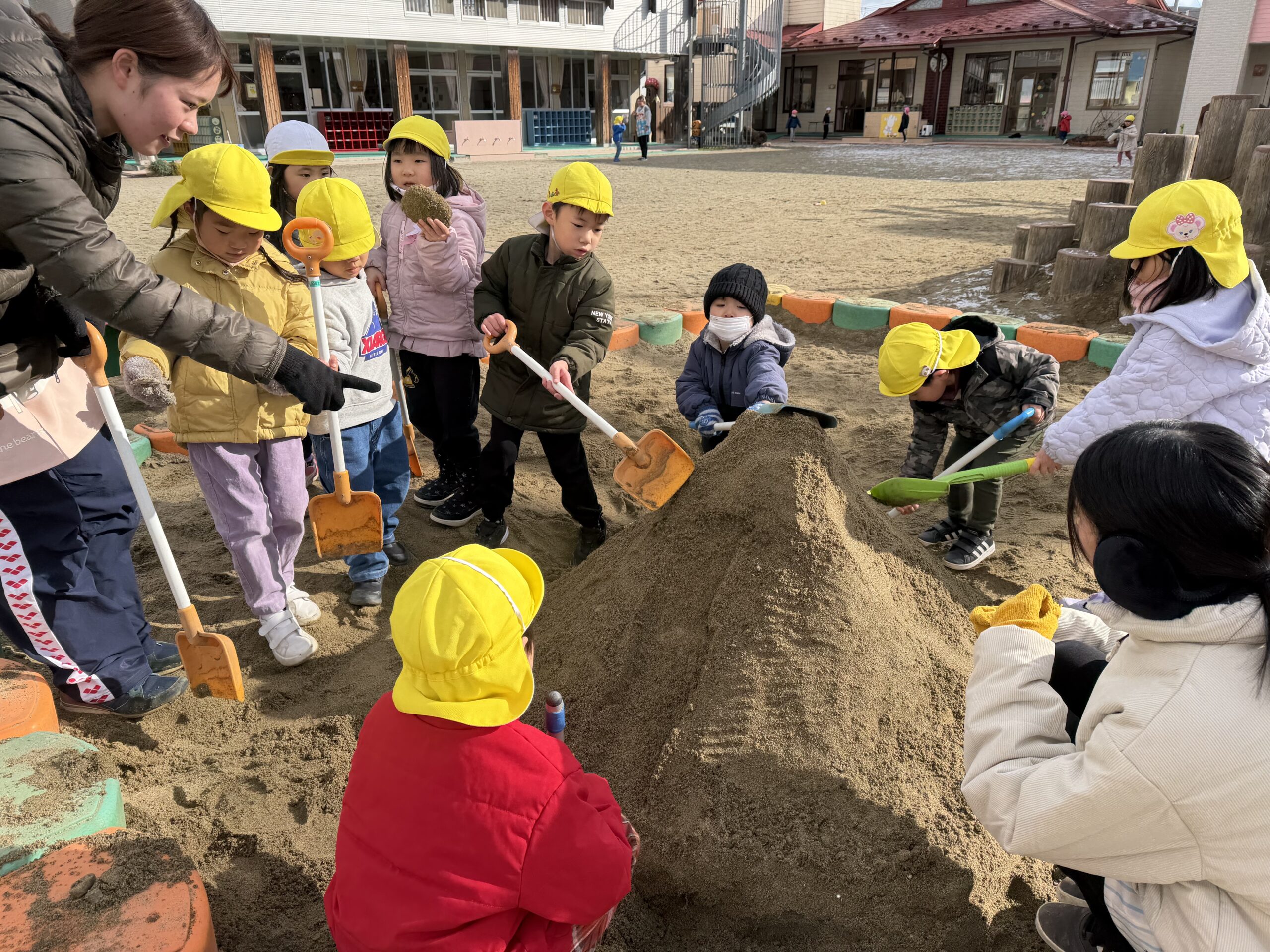 晴れた日には、みてみて山で遊んだり、砂場で大きな山を作ったり元気いっぱいのわくわくクラブのみんなでした。