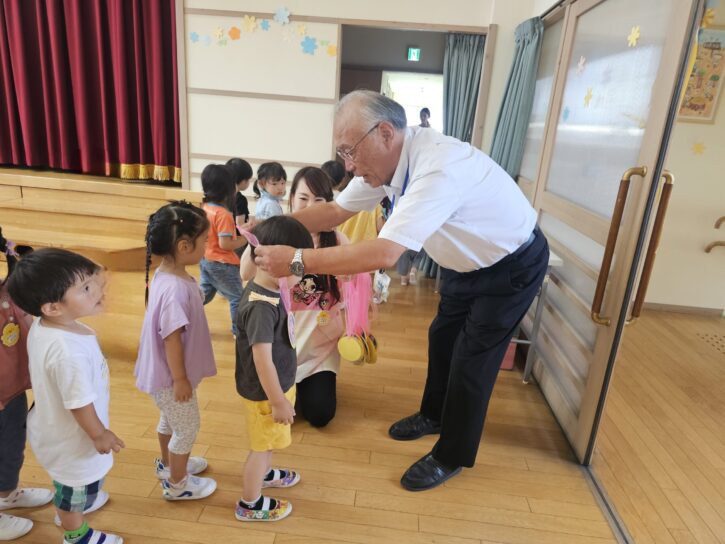 一人ずつ、園長先生から首にかけてもらい、みんなとっても嬉しそう。